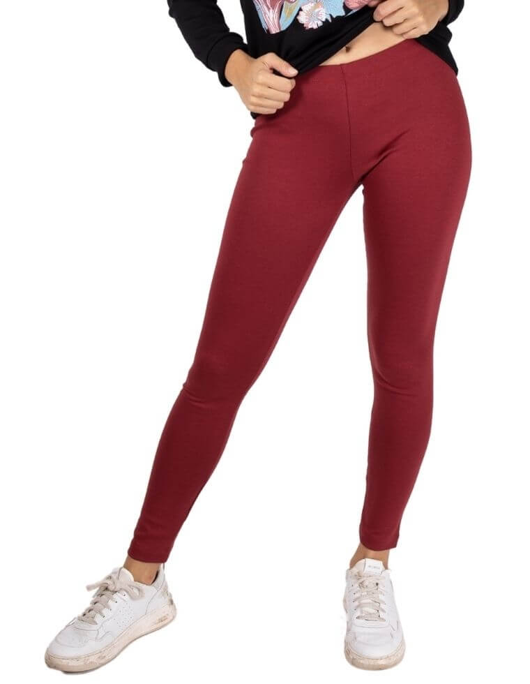 Leggings donna in fibra di faggio colore bordeaux. La vita è alta, elasticizzata e fasciante. La vestibilità di questi leggings è aderente ma comoda. La fibra di faggio è avvolgente e morbida ma altrettanto resistente, rendendo questi leggings adatti a tantissime attività dinamiche, anche all'aperto: dallo yoga, all'attività sportiva o alle classiche passeggiate nel tempo libero. Questi leggings possono essere abbinati nelle giornate più fredde alle nostre felpe oversize e alle t-shirt a manica lunga in fibra di eucalipto. E' un capo speciale e molto versatile, non può mancare nel tuo armadio!