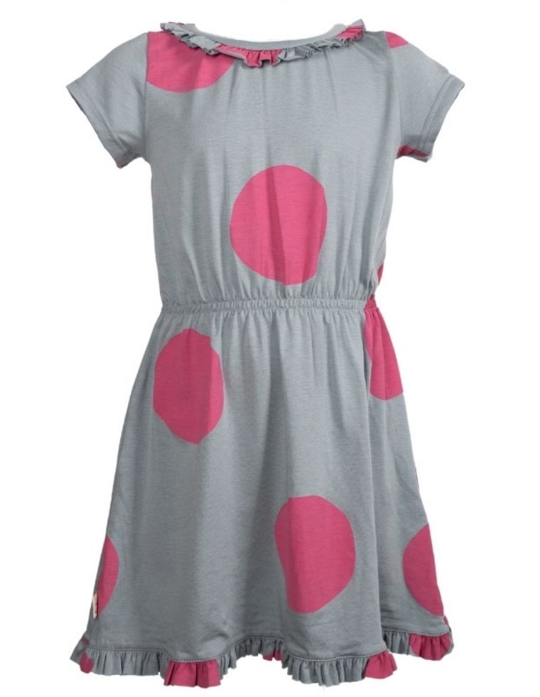 Vestito in morbidissima fibra di eucalipto (Tencel) con coulisse in vita e simpatica stampa bolle. Traspirante, pratico e naturale: una vera e propria carezza naturale per la pelle della tua bambina.